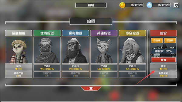 1、在枪匠界面中点击【材料1】【材料2】按钮放入材料枪