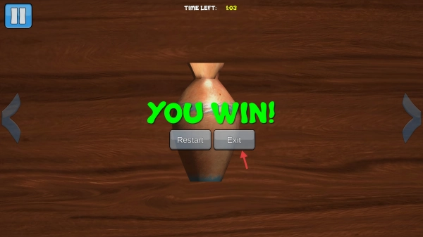 4、成功拼好花瓶后,屏幕显示【YOUWIN】,要是想结束本轮挑战,就点击【Exit】按钮退出关卡吧。