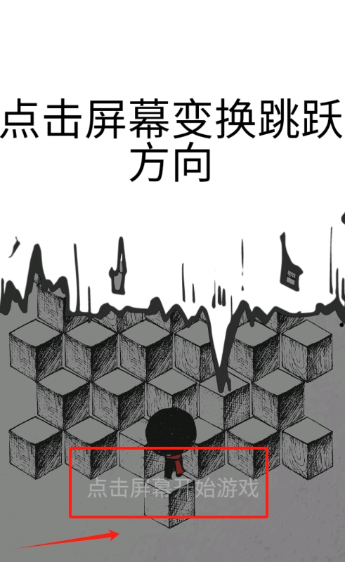 3、点屏幕控制小人跳跃方向,再点一下开始游戏,别掉下去哦。