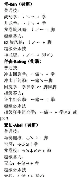 3、SUPERCANCEL:特定必杀技可使用SUPERCOMBO取消。