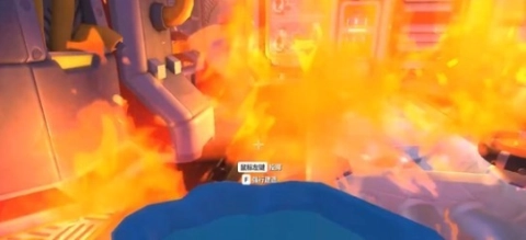 2.利用水桶扑灭飞船的火焰,随即探索周围黑焦木块,获取宝贵的余烬。