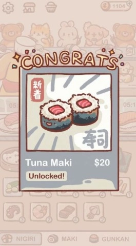 1. 基于小狗顾客的不同口味进行多样化的寿司制作,这将是考验你经营能力的关键所在。