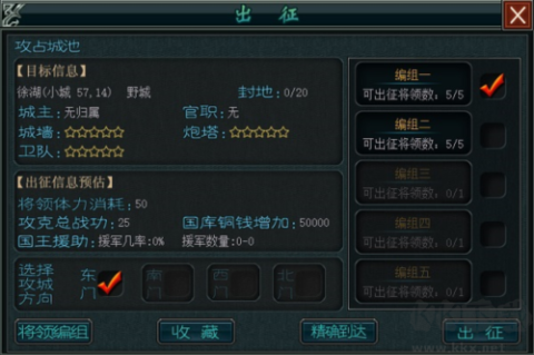 1、首先进行国战将领编组,并安排好你的攻城队伍。