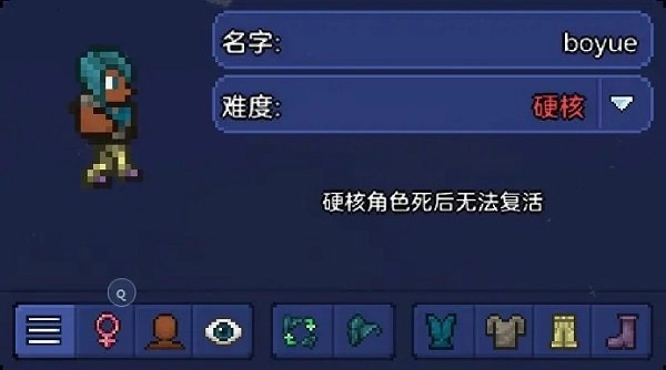 硬核:不是老手千万别选,从开局到结束只有1条命,一旦死亡,直接这个角色被删除,什么都不会剩下。当然,如果是去别人地图不小心死亡还是能救回来的,就是需要别人帮忙捡下东西。