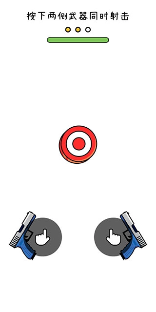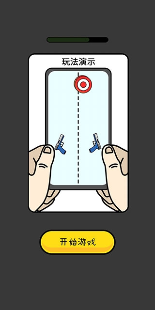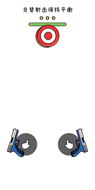 1、这款游戏的玩法十分简单,屏幕左右两边各设有一把枪,目标物会自下而上出现,它们的移动路径正是屏幕中央的那条虚线。