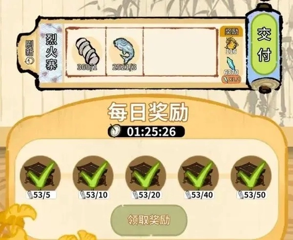 交易阁包括两类奖励:交付奖励和每日奖励。前期资源相对紧缺,且交付奖励较少,因而不建议将升级建筑、升阶弟子所需的材料交付交易阁,平时刷新交付任务、获取每日奖励即可,在周末利用1.2倍奖励buff可以适当多交付任务赚取灵石。在开放仙级丹药胚后,交易阁的收益会有明显提升