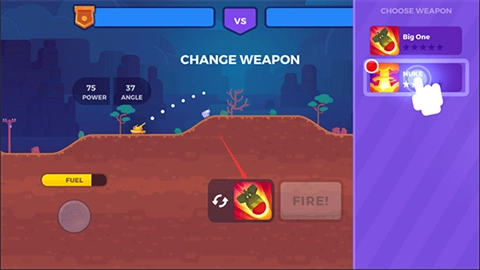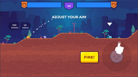 2、利用右下角的瞄准键调整射击角度,当确认可以击中敌方坦克时,点击“FIRE”按钮发射炮弹。