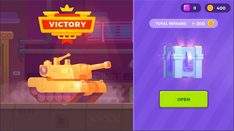 4、成功击败敌方坦克即可赢得比赛,胜利后将获得一个宝箱作为奖励。