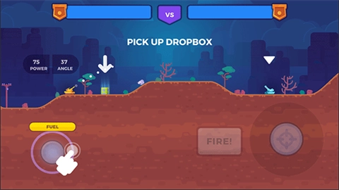 1、打开Tank Stars游戏,通过左下角的控制按钮操控坦克行进。战斗场景中会定期投放补给物资,操控坦克移动到补给掉落的位置就能完成收集。