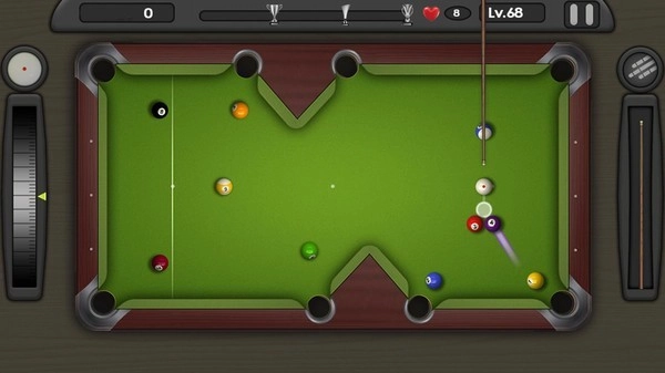3、轻松的背景音乐和逼真的台球场景模拟,完成一系列的操作体验。