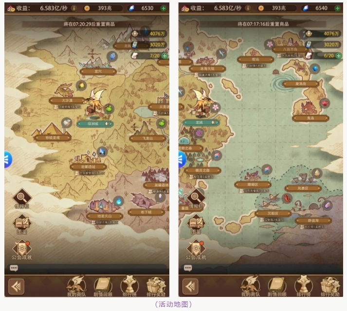 每个地区有着自己特产,以及暂时紧缺的物资。特产的库存和紧缺的物资会随着每固定小时更新一批,作为公会活动,紧缺物资刷新后,公会成员可以去探索尚且未知紧缺物资的区域去获得情报,并且向公会分享,分享后会获得分享情报奖励。【小知识】特产的价格并不会被公开至情报栏,可以将这一情报在公会聊天室里提供哦