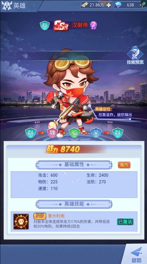 这个属于极速推图组合,陆逊做为输出核心能够给敌人超强的攻击,刘禅和汉献帝还可以给全体对手造成一定的伤害,配合上诸葛亮的助,可以快速推图闯关。