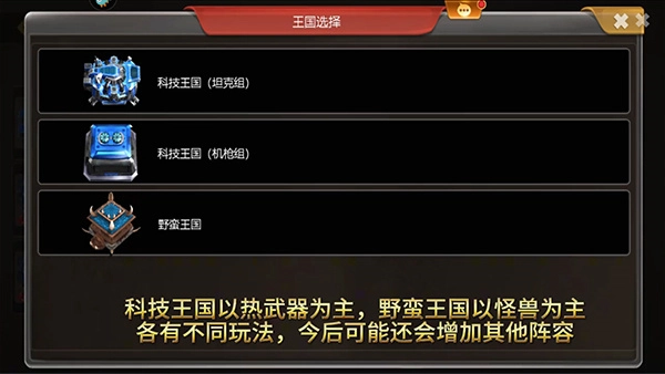 2、游戏一共有2个区域,科技王国以热武器为主,男野蛮王国以怪兽为主