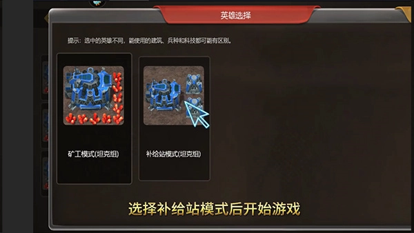 5、选择补给站模式后开始游戏,选择的英雄不同,能声音的建造和兵种都可以会有很大的区别