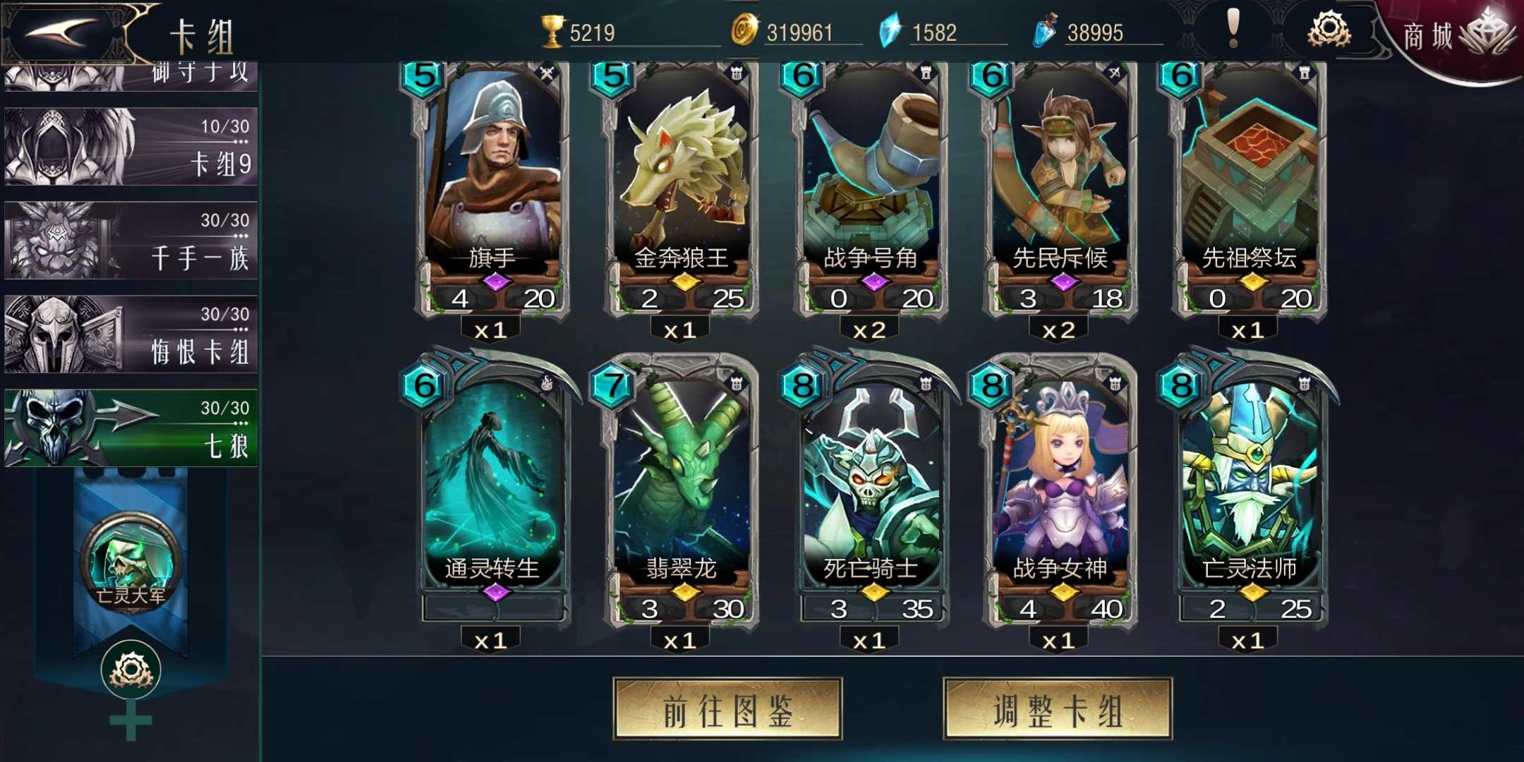 七狼是最廉价也是最容易成型的体系,金狼1,蓝狼2,红狼2,黑狼2(可不带),前期有狼就下,如果对面起手4费以上的兵,很容易什么都没放出来就被抢攻而死。七狼死了也不要紧,纯当作是积攒灵魂和抢血,接着放二技能亡灵大军+战争号角冲锋了。