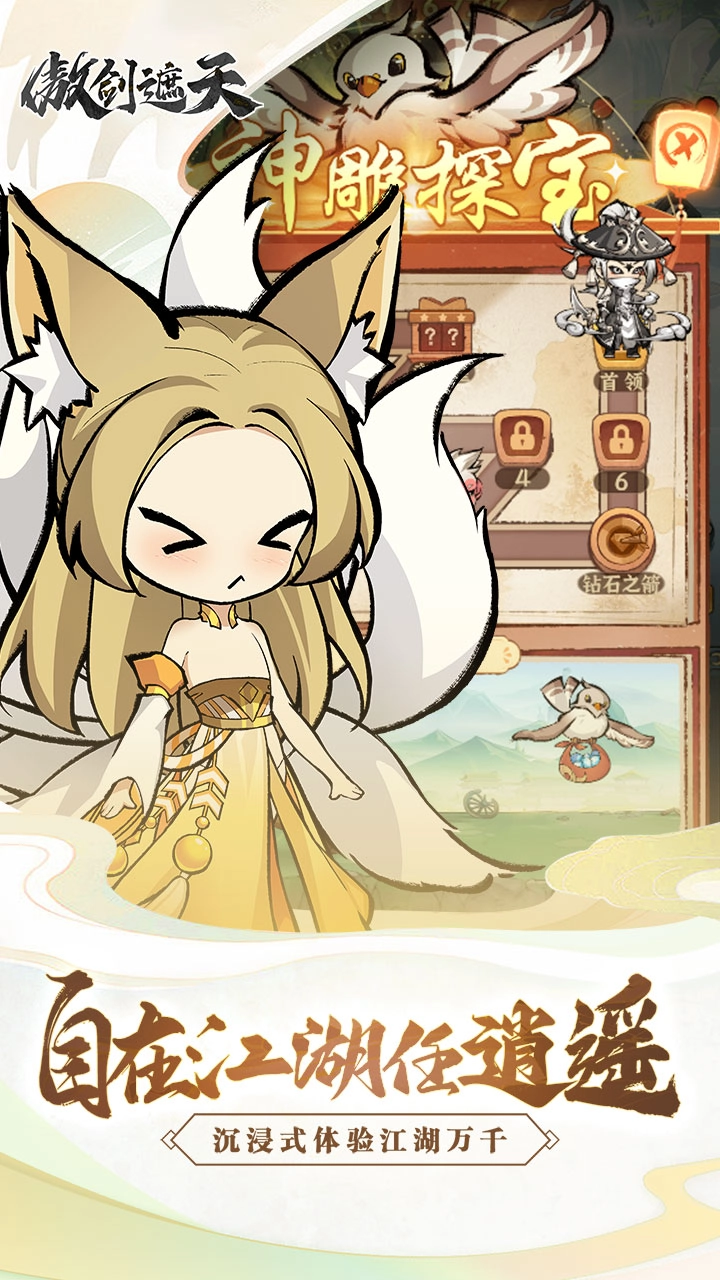 《傲剑遮天》是一款以武侠为背景,主打畅快开宝箱玩法的放置类RPG游戏。在这里,你可以一边悠闲钓鱼,一边潜心修炼,收集强力神装,最终笑傲江湖。游戏内不仅有各类传说级装备,更有海量套装可供获取,为喜爱刷装备的玩家带来纯粹且丰富的收集乐趣。角色属性与装备特性巧妙结合,少侠们能够自由搭配组合,打造出独属于自己的战斗流派。此外,游戏还包含多种精彩玩法等你探索——结交好友、集结伙伴、激情PK……让你全方位沉浸在武侠世界的独特魅力之中!