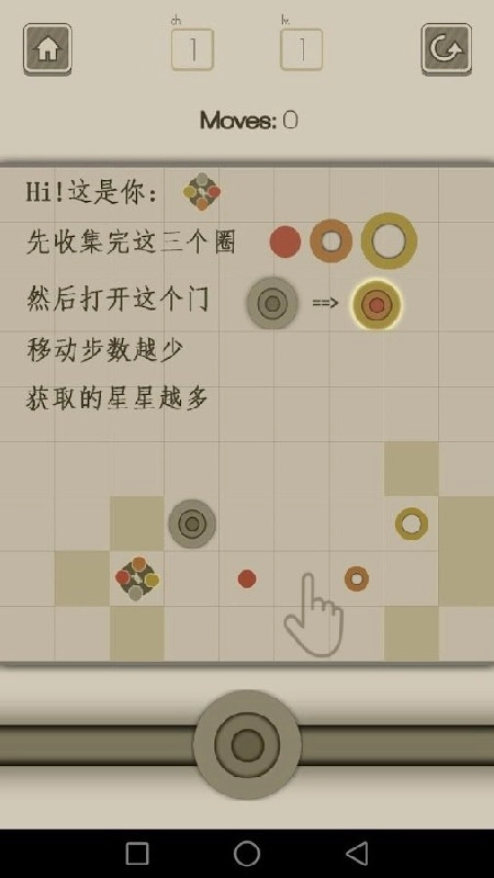 这是一款休闲有趣的迷宫闯关游戏。玩家只需滑动屏幕,就能操控旋转的彩球在方阵中移动,收集其他彩球。当收集到3个彩球后,就可以前往打开通关门,完成关卡挑战。需要注意的是,旋转的彩球只能沿直线运动,并且会一直移动,直到遇到障碍物才会停下。方阵中设有墙壁作为障碍物,彩球需要借助墙壁的阻挡来完成通关。所以,在移动彩球之前,玩家需要提前规划好彩球的移动路线。