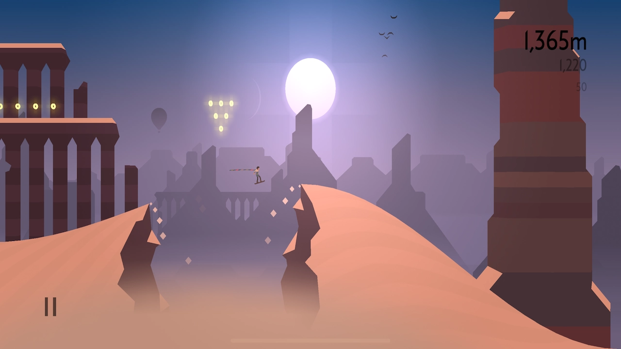 《阿尔托的奥德赛》作为《阿尔托的冒险》的续作,讲述了阿尔托与伙伴们开启一场无休无止的沙地旅程,在漫漫沙原中探寻沙漠隐藏的奥秘。相较于前作,这款游戏拥有全然不同的视觉呈现效果,而玩法层面则延续了前作的经典模式,对于热衷于跑酷类游戏的玩家而言,十分值得一试。