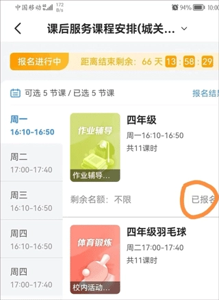 1、注册登录后,在首页中点击课后服务进入选课环节