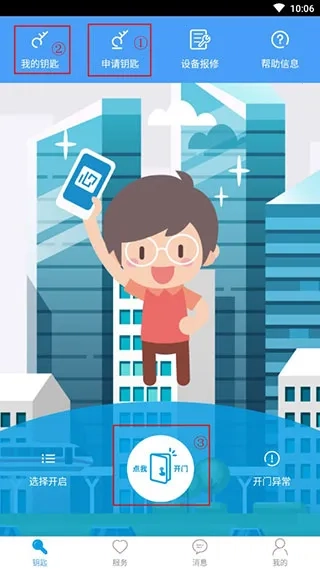 操作非常简便,首先在本站安装最新版本,第一次使用时注册账号和密码,登录之后申请钥匙,添加门禁设备,开门的时候选择“点我开门”就可以了。赶紧来体验吧!