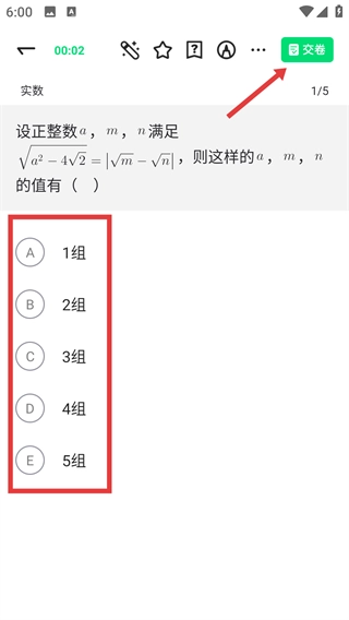 4、做题时认真答题,完成后点击右上角【交卷】,及时提交并查看结果,查漏补缺效率高呢。