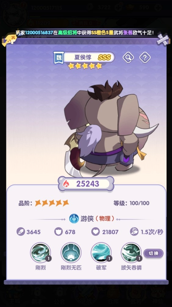5、在武将界面可以查看已有的武将,点击即可进入详情。