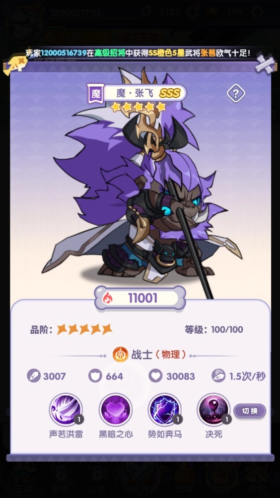 (3)、魔张飞:超强肉坦,减伤回血,死亡复活。