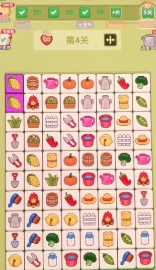 财富四季采用连线消除的玩法,通过将果蔬图案连接起来完成消除操作。