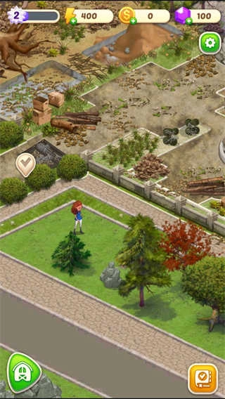 1、首先大家打开游戏,映入眼帘的是一片杂乱的庄园,所以我们得着手整理,点击中间那个带对勾的按钮就可以了。