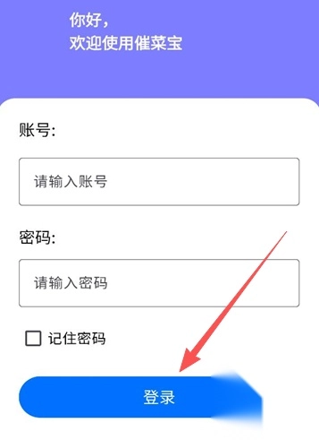 1、启动催菜宝应用,输入对应的账号与密码,随后点击登录按钮