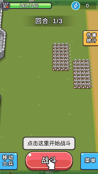 2、千人的壮观战场排列,以兵种的抑制和强化组合,开启随机关卡。