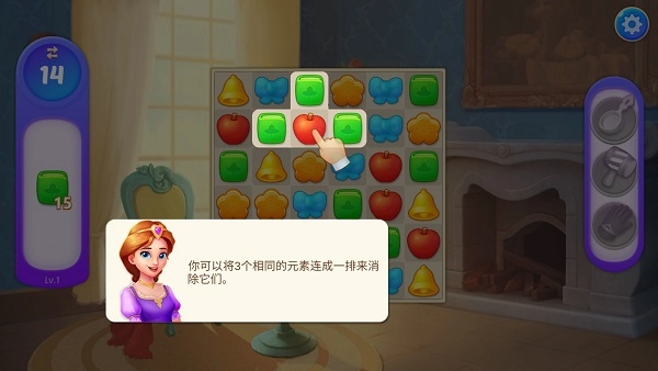 1. 主线消除闯关:匹配宝石、花朵等精美元素达成关卡要求,获取金币与建材,逐步修复城堡的各个区域。