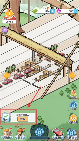 3、在主界面任务区域,点击【领取】按钮,获取经营收入,积累资金用于桥梁建设与升级。