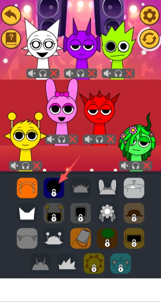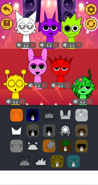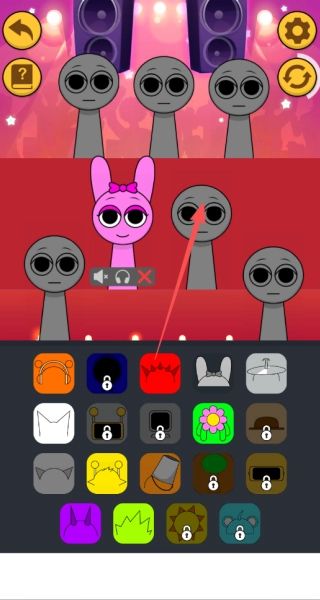 4、点击每个角色下方的音效按钮可实时调整乐器配置,通过组合不同音色创作个性化音乐片段。