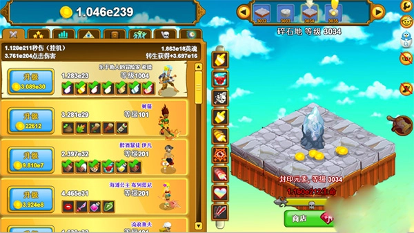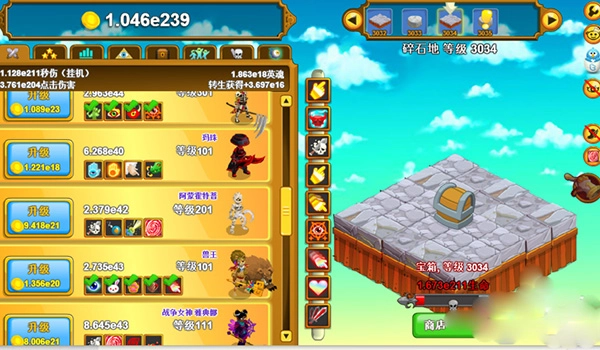 3、使用金子招募新英雄,以此提升伤害输出。输出的伤害越高,所能获取的金子数量也就越多。