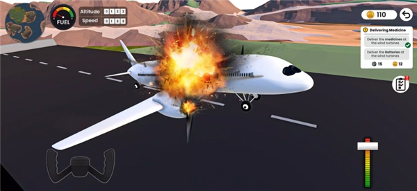 4.飞行过程中若飞机部件受损(如引擎故障),可能引发爆炸等故障,此时需重新返回组装界面检查并修复部件,确保后续飞行安全。