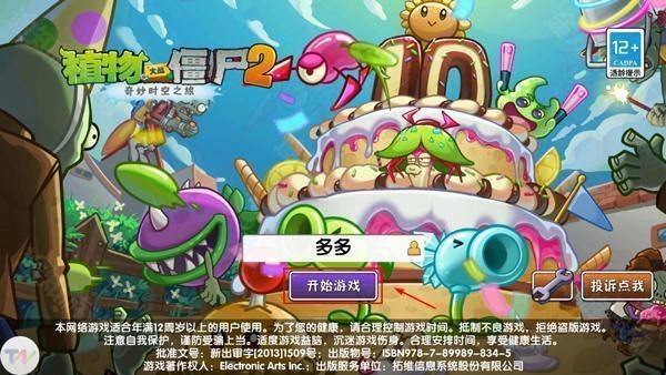 1、打开植物大战僵尸2十二周年版本,点击开始游戏;