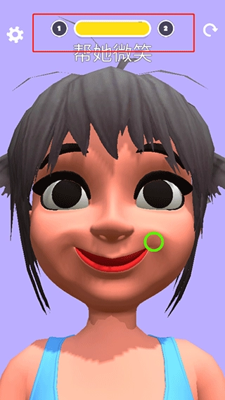 2、拖动圆形拉环来操控面部骨骼,帮助角色微笑完成任务,每个关卡目标不一样