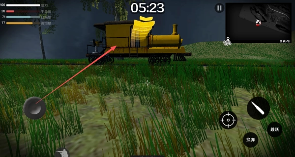 进入游戏后,要快速在场景里找到那辆黄色小火车并登上它,依靠火车来避开外界的危险。