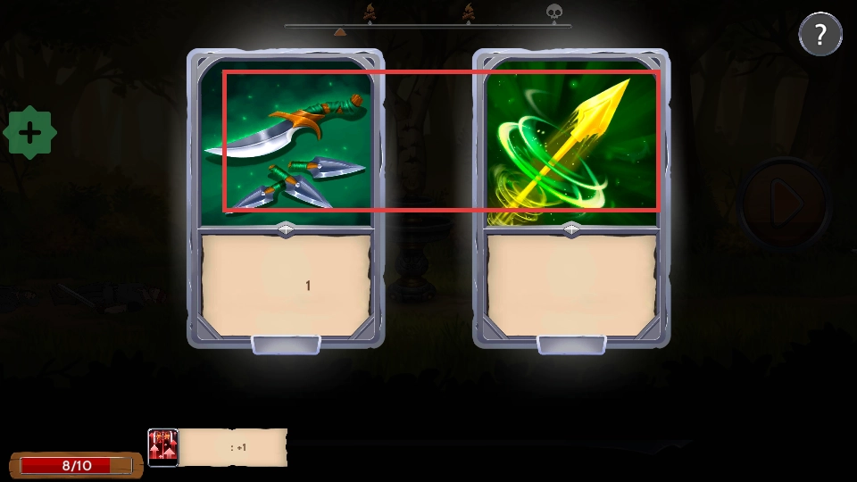 2、选择武器卡牌,提升战斗能力,为后续战斗做好准备。