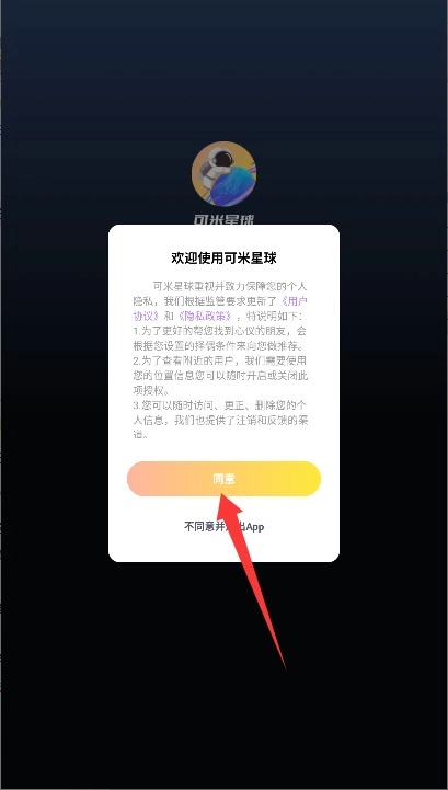 1、首次使用时需仔细阅读平台的服务条款与隐私政策,在确认无误后点击同意按钮,即可进入登录界面。
