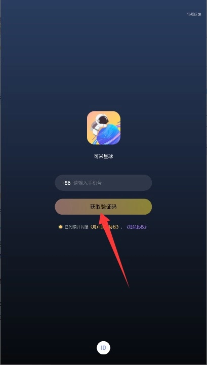 2、在登录界面输入手机号,勾选同意相关协议后点击获取验证码并输入完成登录。