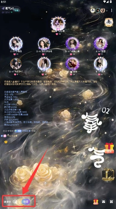 4、在语音房间内可使用文字聊天功能交流,或点击上麦按钮开启语音实时对话。