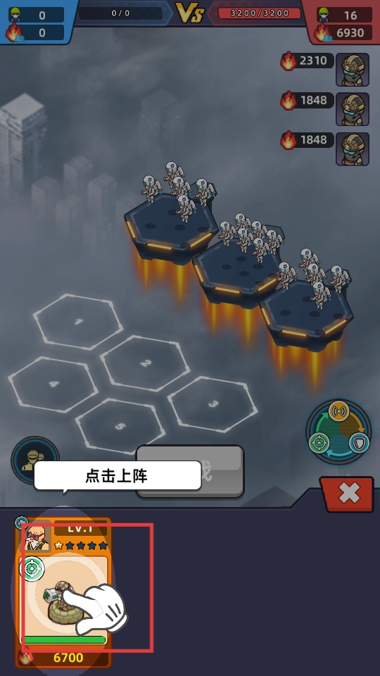 4、点击上阵角色,部署战力,参与战斗,提升获胜几率。