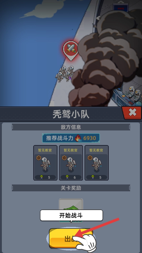3、点击【出战】,开始与秃鹫小队的战斗,获取关卡奖励。