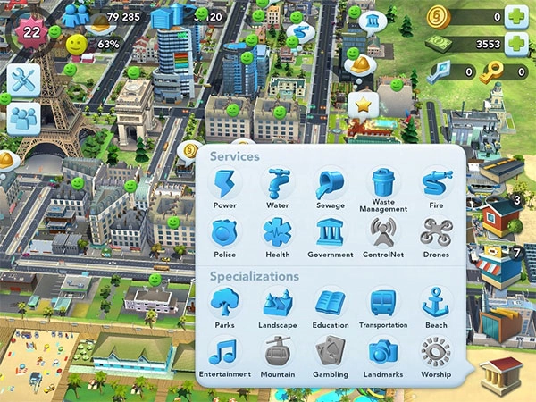 1、打造一座专属的城市:无论是想建东京、伦敦还是巴黎风格的社区都没问题,还可以解锁各种地标建筑,从自由女神像到凯旋门,全部搬进城市里。喜欢未来科技的话就去探索未来之城,喜欢自然的话那就把城市扩建到海滩、湖泊或者森林旁边;