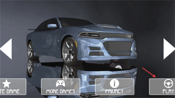 1、点击主界面右侧的PLAY按钮,挑选道奇挑战者这类经典肌肉车型,开启自由驾驶模式或是参与赛事挑战。
