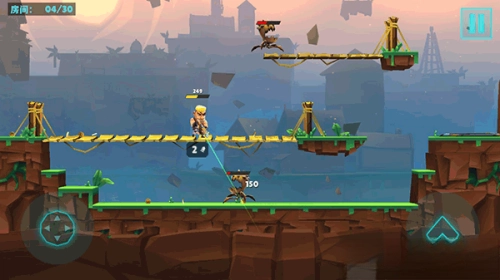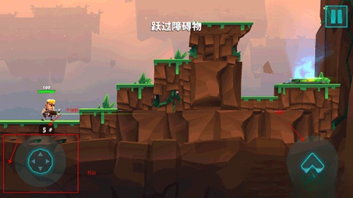 1.游戏左下角的方向键控制移动,右侧按钮负责跳跃与射击。