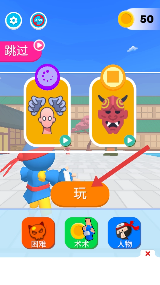进入游戏界面后,点击【玩】按钮即可开启忍者对决挑战,期间能依据个人喜好挑选角色外观。