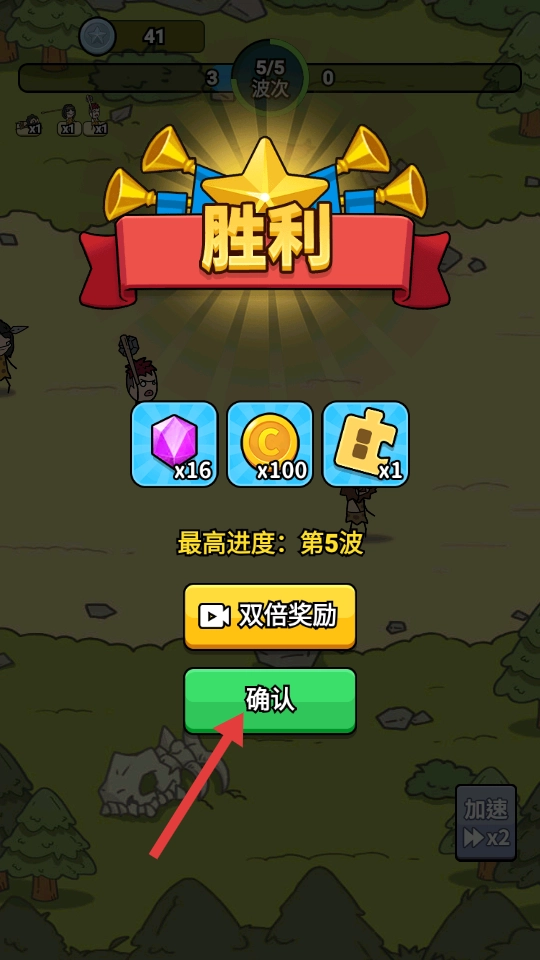 4、战斗胜利后点击【确认】,领取奖励,总结经验用于后续挑战。